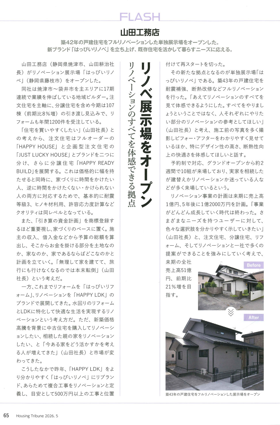 創樹社が運営する住生活産業総合情報誌「Housing Tribune」2026年3月27日721号にて、はっぴいリノベの取り組みが紹介されました。